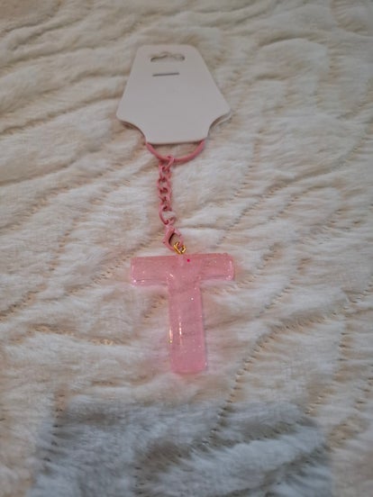 The Alphabet keyrings are handmade with clear resin, acrylic paint and glitter. The keyrings come in different colour chains.