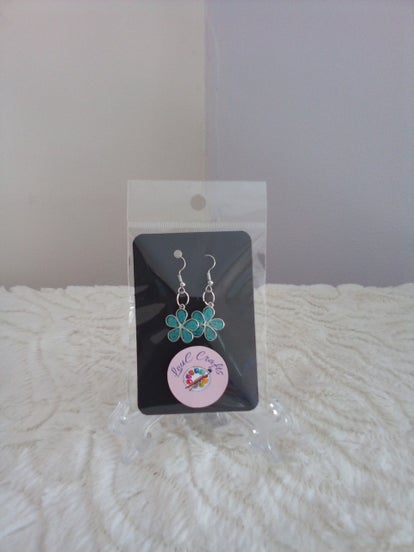 Beautiful flower design resin earrings. These earrings are homemade.The earing are silver plated with turquoise resin in the flower petals.