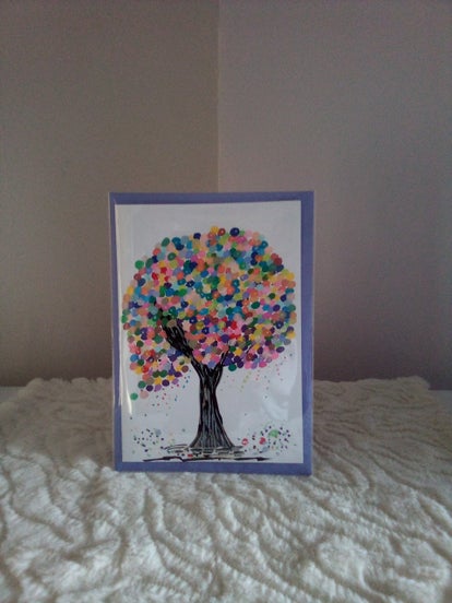 Beautiful Tree Birthday card .This card is handmade with acrylic paints. The card is blank inside for you to write your own message.