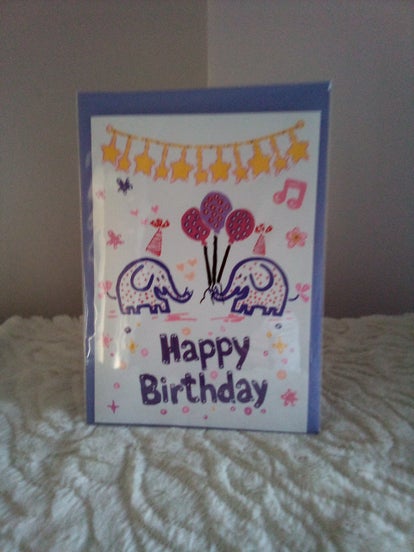A cute birthday card for a young family member.The card has been hand painted with acrylic paints. The card is blank inside for you to write your own birthday message.