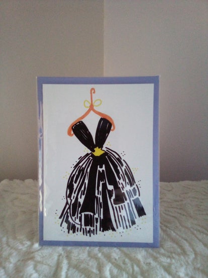 Beautiful black dress with a yellow sash, beautiful card for a female family member. The card is blank inside for you to write your own personal message.