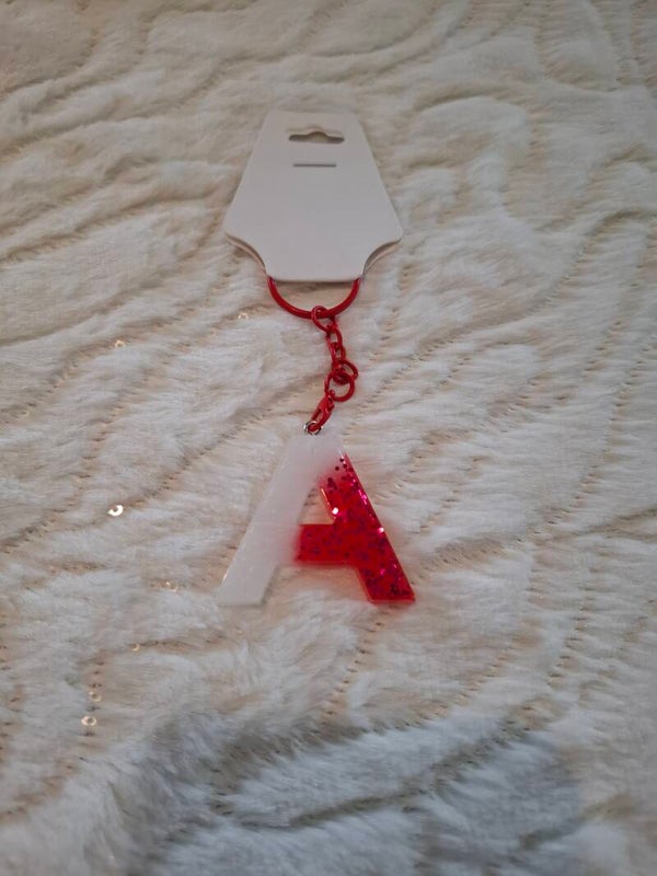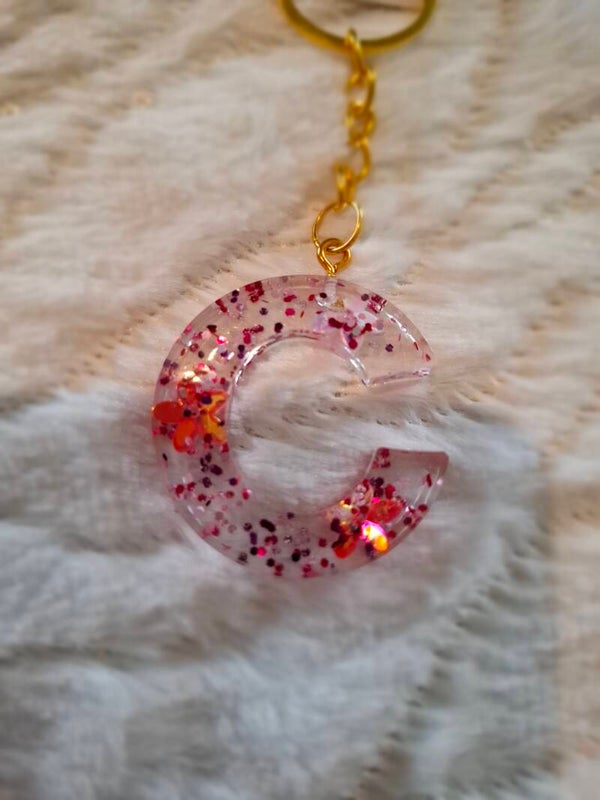 These A/B/C alphabet keyrings are handmade with clear resin, acrylic paints, glitter and flowers. The key chains colours are